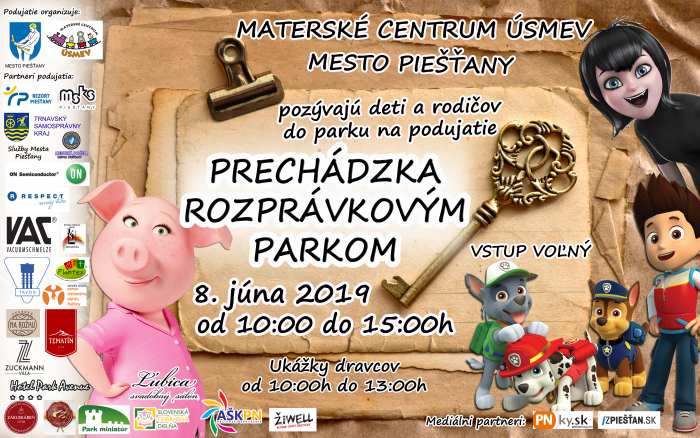 V druhú júnovú sobotu si prídu v Piešťanoch a svoje všetky vekové kategórie. Už dopoludnia sa mestský park zmení na magickú krajinu, po ktorej budú deti v sprievode rodičov putovať s mapu v ruke. Pôjde o dobrodružný výlet z rozprávky do rozprávky, počas ktorého musia malí i veľkí plniť rôzne úlohy.